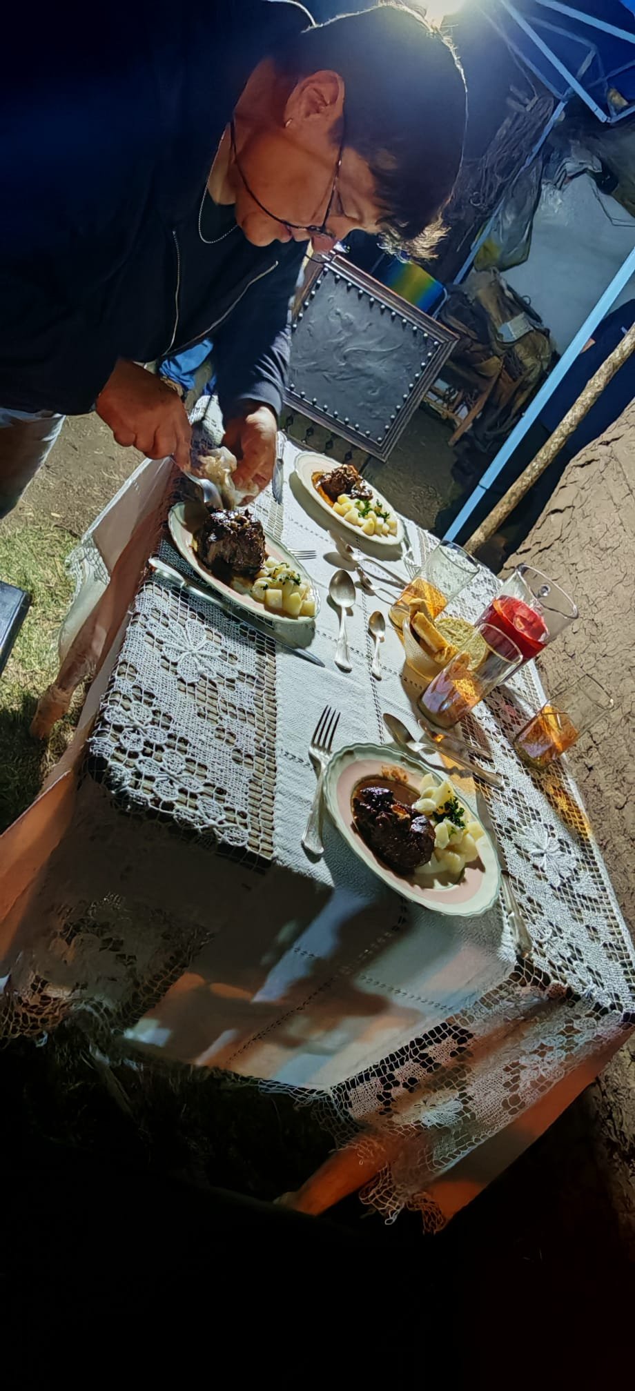 La propuesta gastronómica estuvo guiada por la búsqueda de recetas que mantuvieran la esencia de las comidas de antes. El plato principal fue una pata de cordero al ajo y al vino, dorada lentamente y cocinada a fuego suave, acompañada de papas blancas impregnadas con el jugo del propio cordero. Una preparación sencilla, pero cargada de historia y técnica criolla.