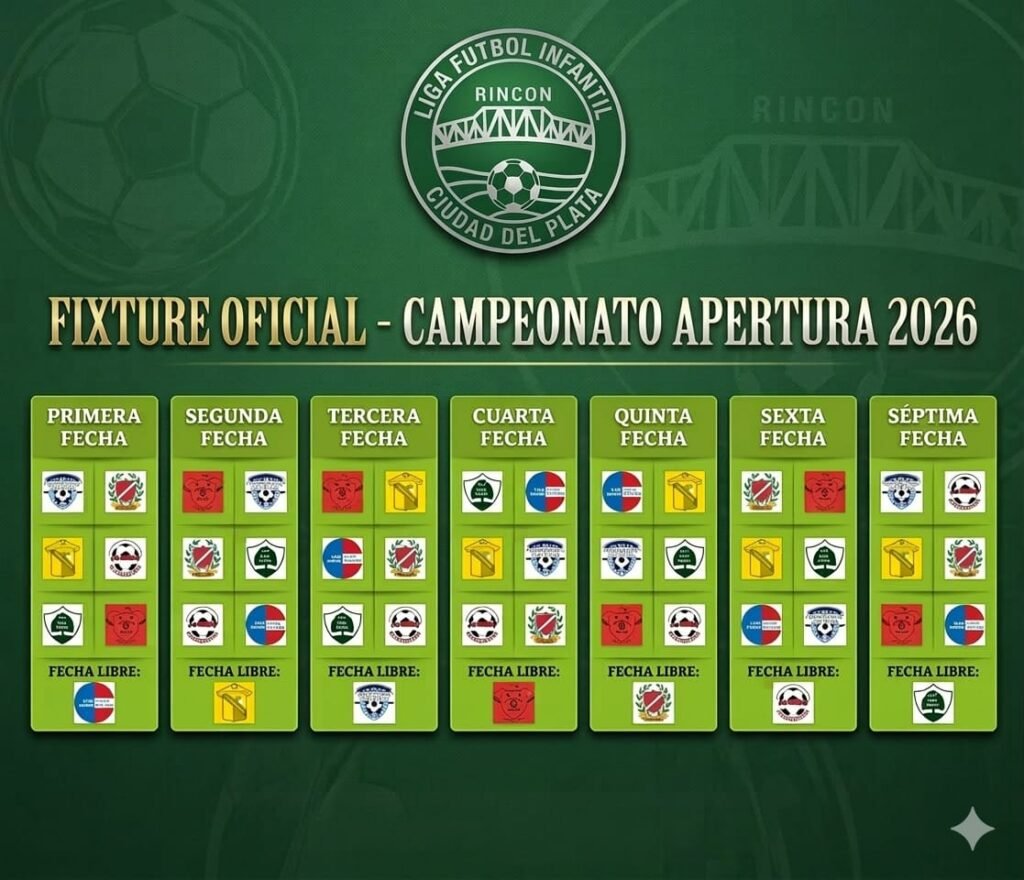Comenzó la temporada 2026 del fútbol Infantil – Este fin de semana comenzó la jugarse la primera fecha del campeonato Apertura de la temporada 2026 en las canchas de Ciudad del Plata, con la participación de siete clubes de fútbol Infantil. La actividad se desarrollará durante hoy 11 de abril y el día de mañana 12 de abril para abrir la primer jornada de un año deportivo muy esperado por ciento de niños, familias y las diferentes instituciones nucleadas en la Liga de fútbol infantil «Rincón» de Ciudad del Plata.