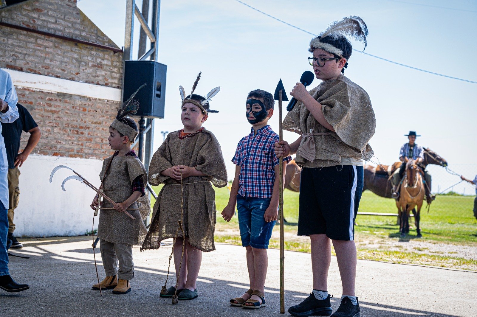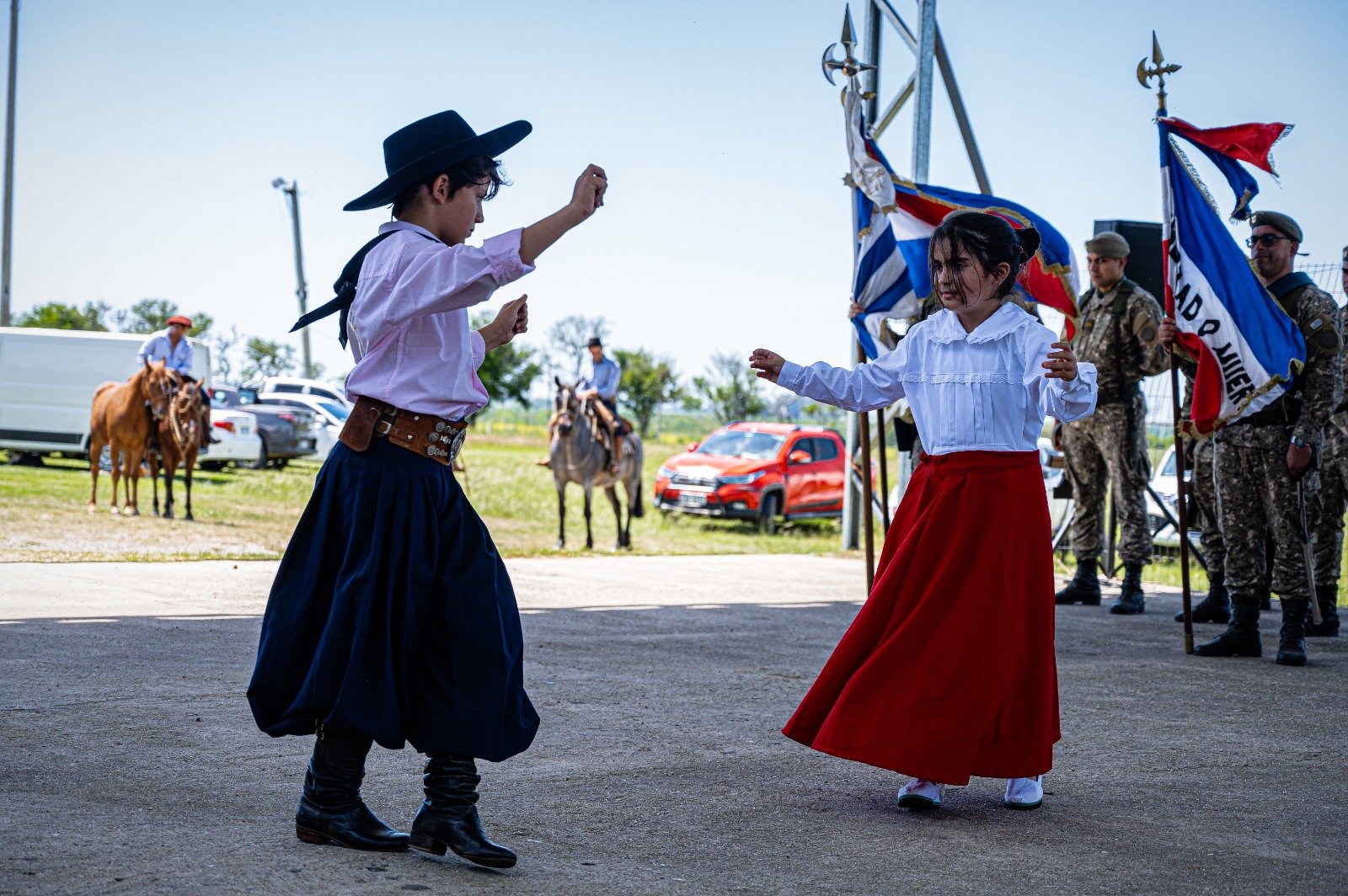 El acto cultural continuó con una representación artística del Éxodo realizada por estudiantes de la Escuela N.º 7, y una interpretación de baile a cargo de la Escuela N.º 37, quienes presentaron la “Chacarera del rancho” de Los Nocheros.