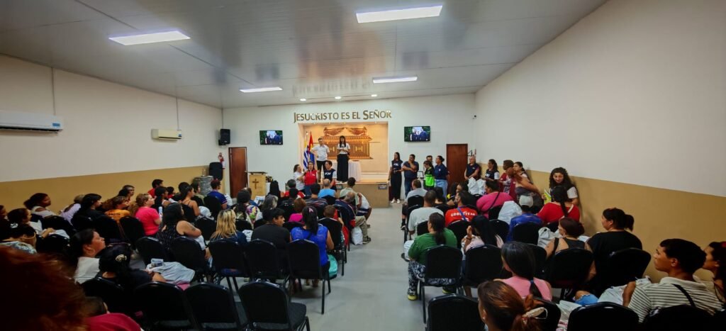 Tras el mensaje inicial, se procedió a la entrega de las canastas navideñas, acompañadas de un libro de fe. Las familias también participaron de una merienda comunitaria y tuvieron acceso a ropa, calzado y servicios gratuitos como corte de cabello y cuidado personal.