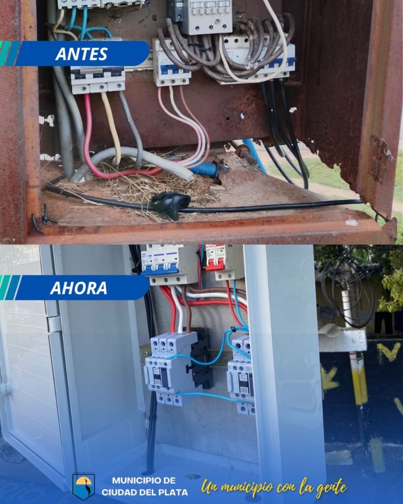 Estas tareas se realizan mediante la empresa contratada Consorcio Joamar – TAS Soluciones Eléctricas, con el objetivo de optimizar el funcionamiento del sistema, mejorar la seguridad y brindar un servicio más eficiente a vecinos y vecinas. Las imágenes difundidas muestran el antes y después de las intervenciones, reflejando mejoras concretas en la infraestructura eléctrica que sostiene el alumbrado de los barrios.