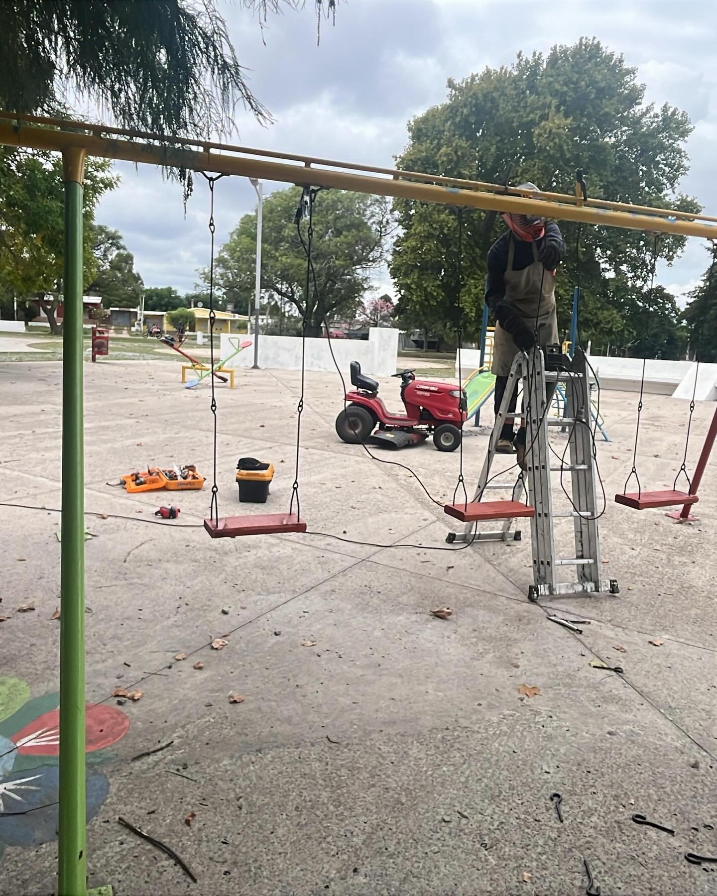Las tareas incluyeron acondicionamiento general, limpieza, reparaciones en los juegos infantiles y mantenimiento del césped, con el propósito de que la plaza continúe siendo un lugar seguro, cuidado y disfrutable para vecinos y vecinas.
