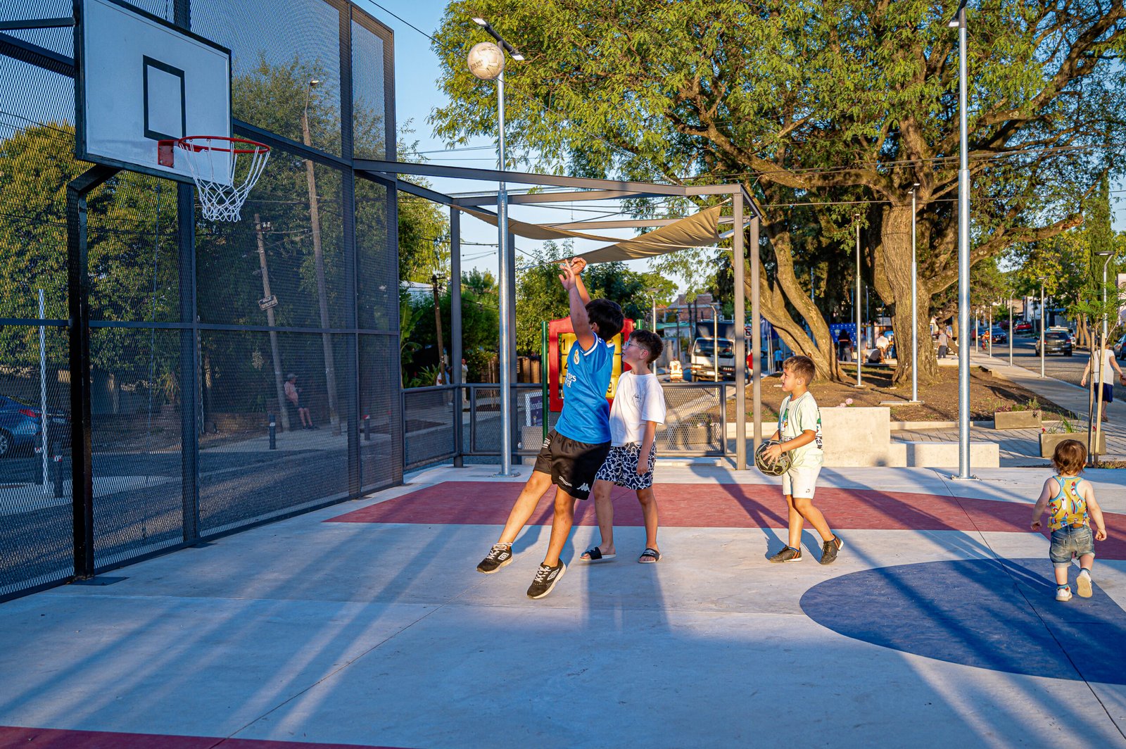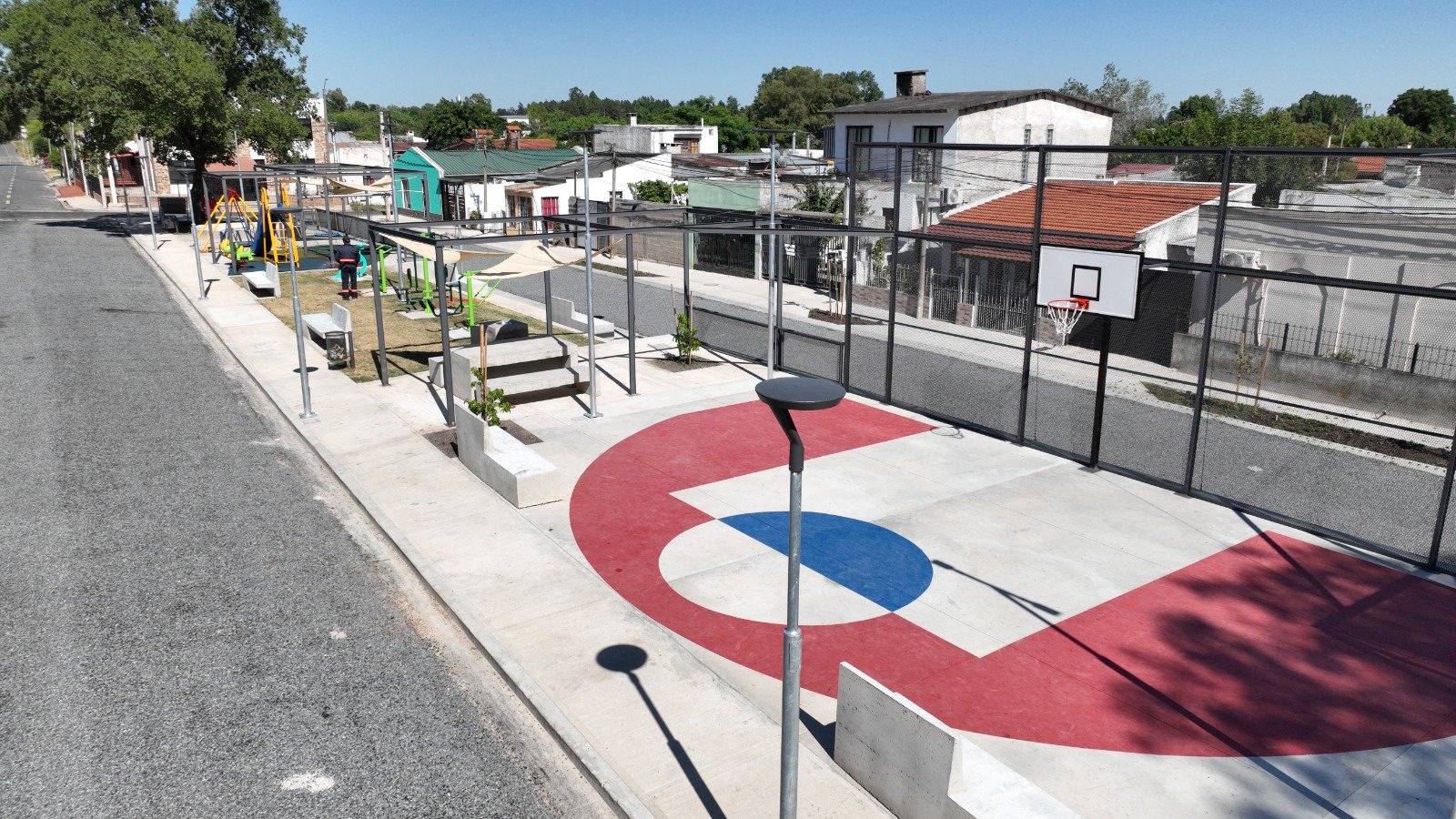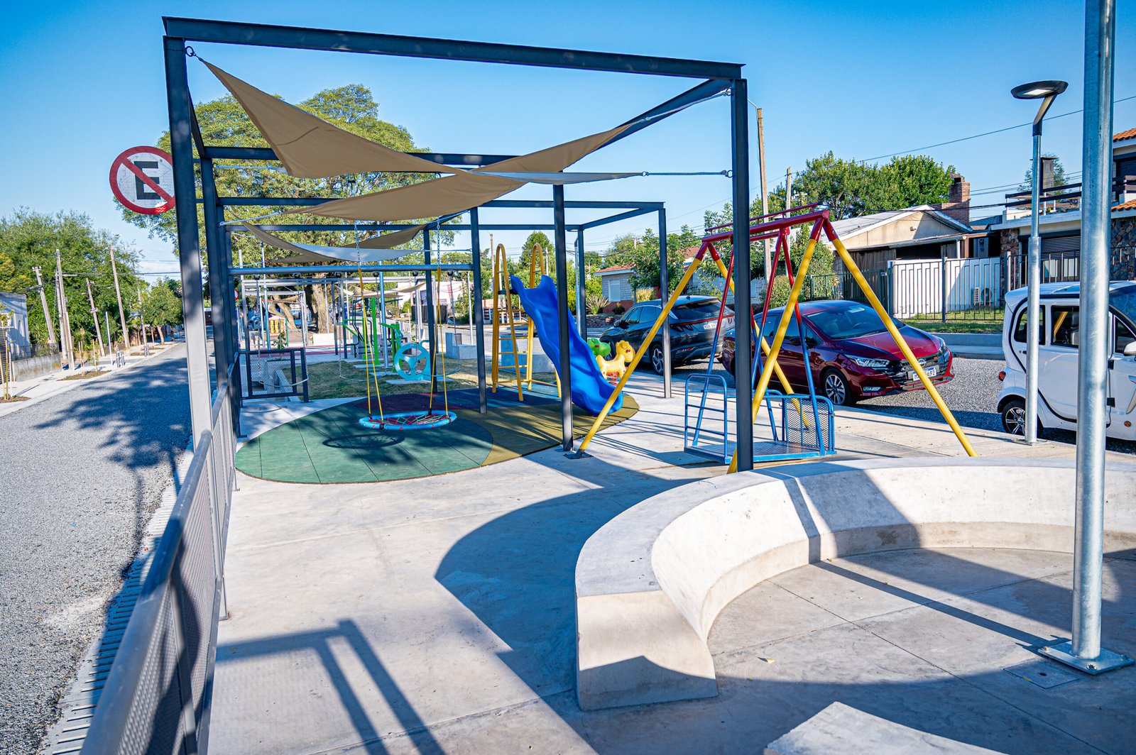 La intervención incluyó la habilitación de nuevo alumbrado público con canalización subterránea. Asimismo, se incorporó señalización vial, lo que mejora la seguridad y la integración de la plaza con el entorno urbano inmediato.